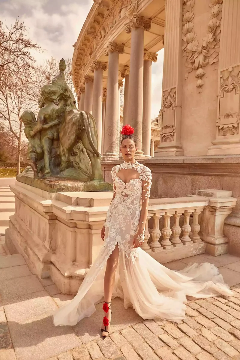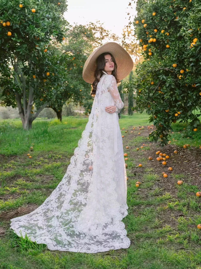 Фата доминирует в лукбуках этого сезона. Несмотря на богатую историю этого обрамляющего лицо свадебного аксессуара, дизайнеры переработали его и обновили традиционный стиль различными комплектациями. От варианта MADELINE со скоплениями цветов розы в 3D-формате до кружевного края Honor. Эти дополнительные детали актуализировали классический образ, давая возможность любой невесте сделать выбор.