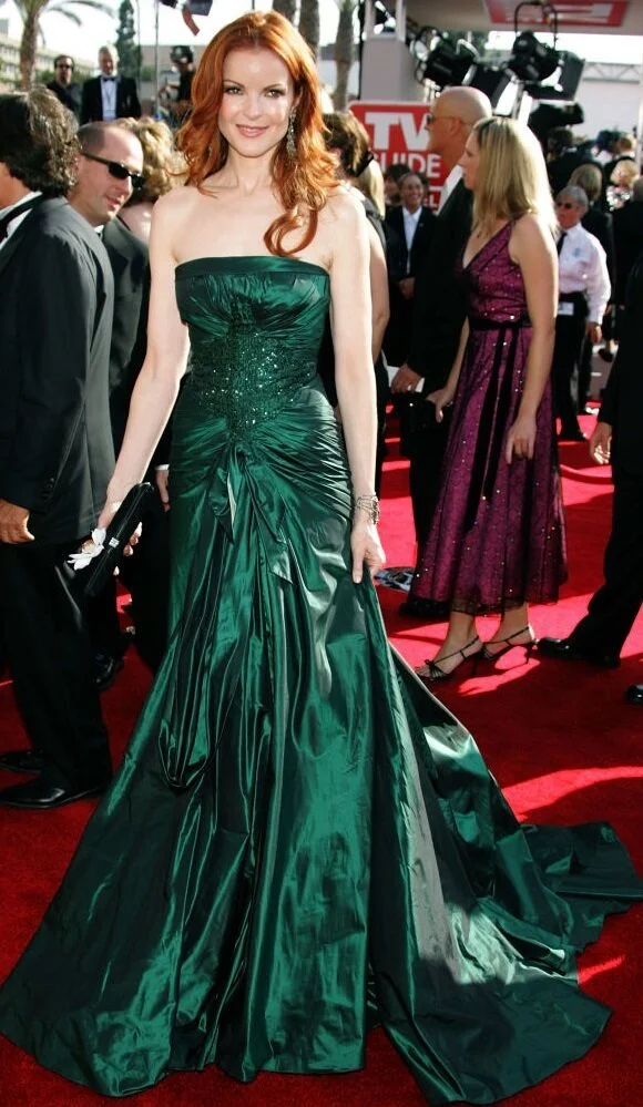 2005 Звезда «Отчаянных домохозяек», рыжеволосая красавица Марсия Кросс в изумрудном платье от Elie Saab. Она была отмечена Emmy за исполнение роли Бри Ван де Камп в этом сериале.
