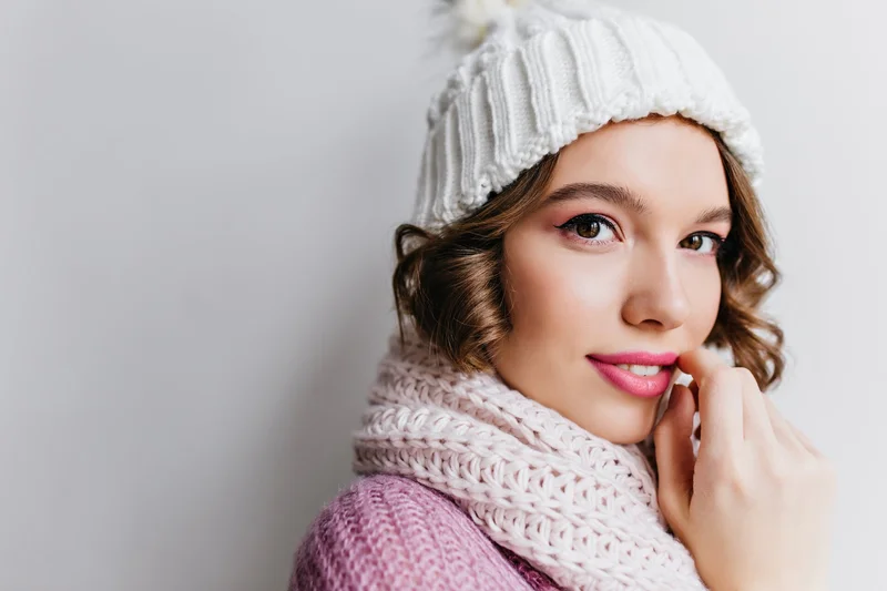 Девушка в белом шарфе и шапке Источник фото: @lookstudio/freepik.com