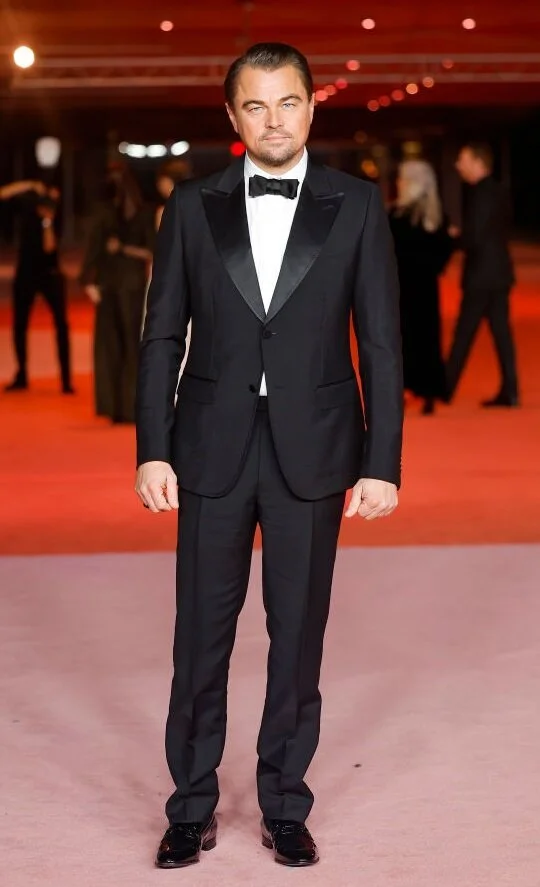 Звезда «Убийц цветочной луны» выглядел перед фотографами сдержанно в идеальном чёрном костюме из смокинга и брюк со стрелками. Черный галстук-бабочка, белоснежная рубашка и аккуратно зачёсанные назад волосы довершили его совершенный вечерний образ.
