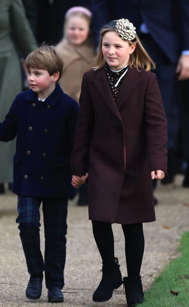 На пути следования королевской семьи в церковь к младшему ребёнку Уильяма и Кэтрин присоединилась его троюрная сестра – внучка принцессы Анны, сестры короля, Миа Тиндалл. Дети широко улыбались фотографам, когда бодро шагали по дороге, приветствуемые собравшимися местными жителями. В этом году Луи впервые появился на публике в пальто и брюках-слаксах из тартана. До этого, по британской традиции, его одевали в шорты и гольфы до колен.