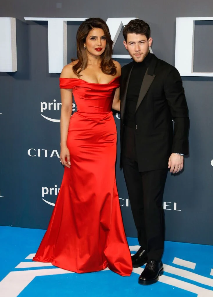 Пара произвела фурор на кинопремьере в апреле. Монохромными нарядами – она в красном, он в чёрном – актриса и музыкант напомнили о классическом голливудском гламуре. Платье Чопры сшили в британском Vivienne Westwood. Джонас дополнил пиджак-смокинг водолазкой с высоким горлом и дорогими часами.