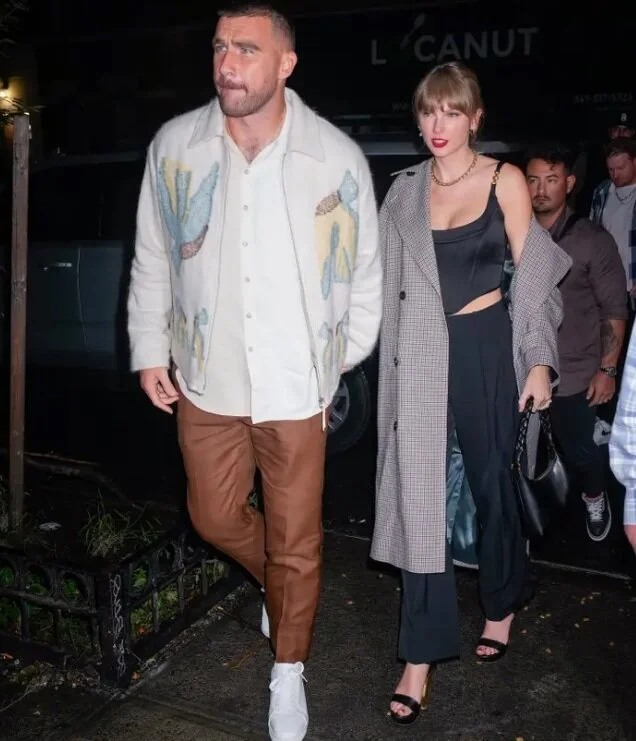 После посещения программы Saturday Night Live пара появилась перед фотографами в совершенных осенних ансамблях. Образ Свифт включал корсетный топ от Versace, чёрные брюки с высокой талией, серое, в мелкую клетку, пальто от Gant за $825, сумку Aupen за $345 и босоножки. Келси облачился в нейтральные оттенки и выбрал жакет от Jil Sander с крупным «птичьим» принтом, белую рубашку, коричневые брюки и белые кроссовки.