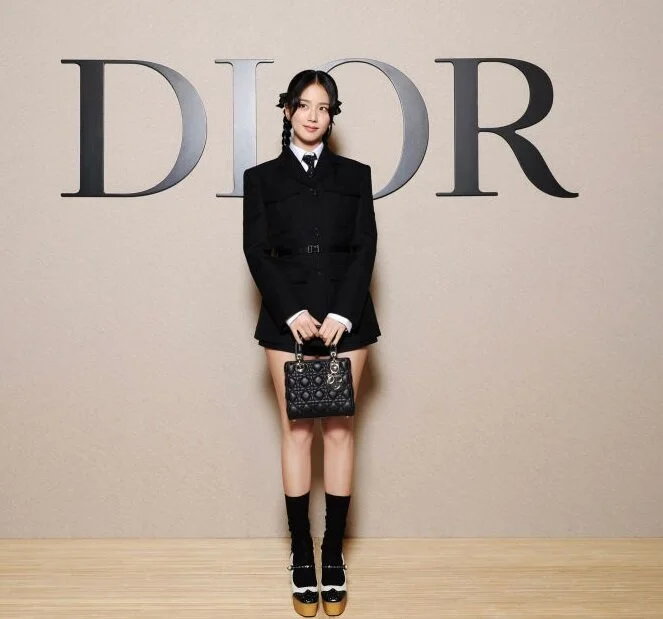 Первым состоялось шоу Dior, и 29-летняя Джису появилась на нём в оригинальном образе учащейся школы. Она надела белую рубашку с чёрным галстуком под мини-платье в виде блейзера, которое затянула в районе талии. Идеальным аксессуаром к наряду певица выбрала маленькую сумочку Dior, как и полагается амбассодору знаменитого французского модного дома.