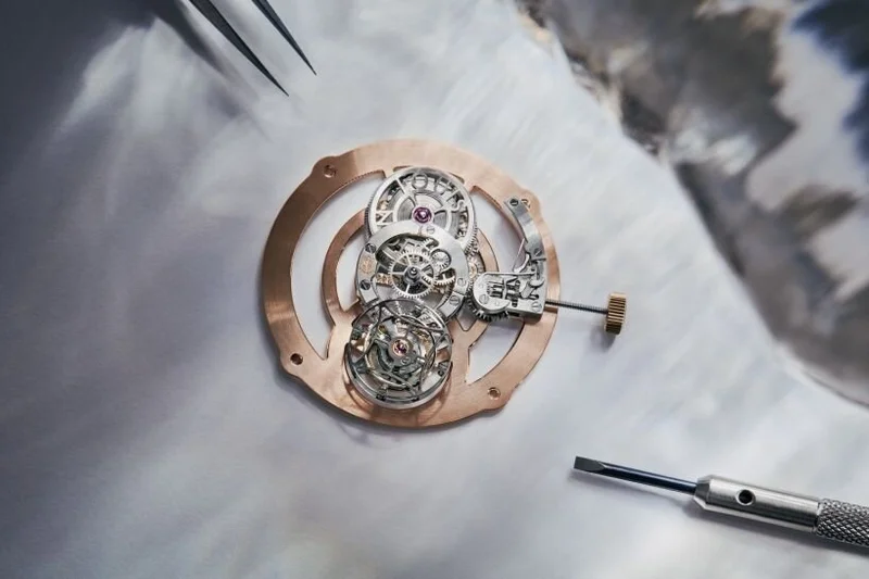 «Архитектурный шедевр с сапфировым стеклом позволяет каждому миллиметру красоты шестерёнок светиться, включая фаску и блестящую отделку, применимо к мельчайшему компоненту часов», - добавили в пресс-службе Louis Vuitton. - Изящно открытая изнанка имеет два тона для подчёркивания контрастов. Пластина из чистого розового золота имеет концентрическую блестящую отделку, в то время как шестерёнки и турбийон покрыты родием».