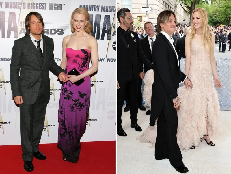 Между этими двумя фото, кажется, прошёл день. Первое было сделано в 2007-м – через год после их свадьбы, второе на балу Met Gala прошлого года. 55-летняя Николь сияла в платье из розового тюля, которое она впервые надела для рекламы Chanel № 5 в 2004-м, поставленной Базом Лурманом. Как и в случае с супругами Дауни, Николь помогла Киту побороть алкоголизм, отправив его в лечебную клинику практически сразу после того, как они начали встречаться, вернула радость творчества и окружила заботой, а позже и детьми. Сейчас пара воспитывает двух дочерей.