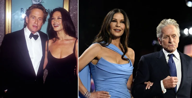 Майкл Дуглас и Кэтрин Зета-Джонс в 1999 и 2023 гг. Источник фото: George DeSota/Liaison, Gareth Cattermole/Getty Images