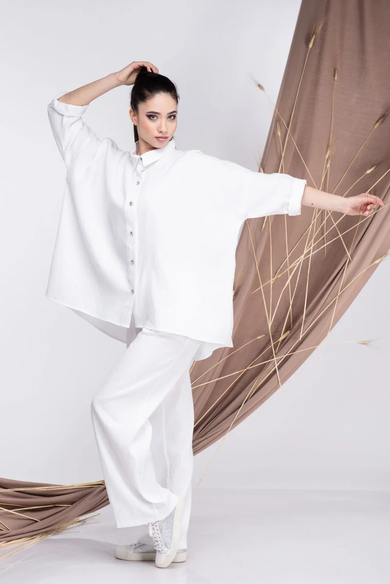 От таких брюк из умягчённого льна не скрыться, даже если захотеть, это гвоздь наступающего сезона. И вытягивающий силуэт комфортный хит - всё, что нужно в жару.