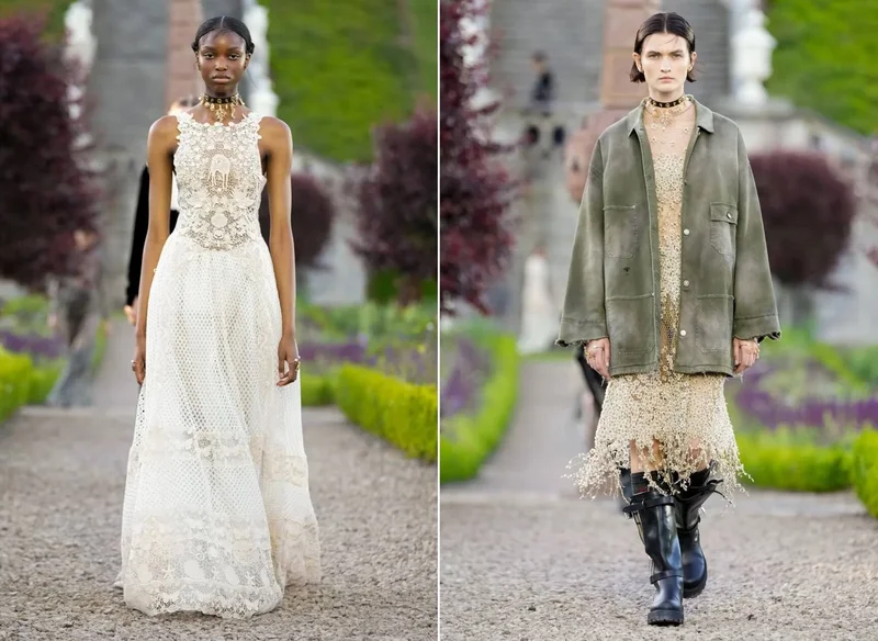 Высокая мода всё чаще выходит на подиум, демонстрируя последние творения в рамках «круизов» по живописным местам мира. После Афин, Севильи и Мехико в этом году Dior обосновался у исторического замка Драммонд возле Криффа в графстве Пертшир, центральная Шотландия. Среди зрителей, устроившихся в первом ряду на фоне садово-паркового ансамбля замка, можно было увидеть муз французского бренда: Дженнифер Лоуренс, Аню Тейлор-Джой, Розамунд Пайк и Летицию Касту, а также целую армию официантов в элегантных чёрных килтах. Вместо подиума – каменная лестница, ведущая прямо из замка, по которой манекенщицы спускались под звуки волынок к аудитории, а затем исчезали за ухоженными живыми изгородями и деревьями.