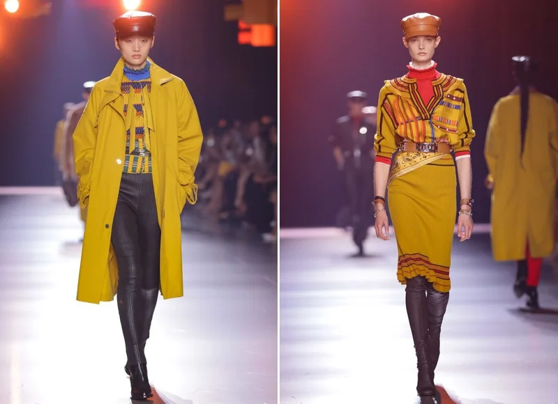 Верхняя одежда жёлтого цвета с кожаной отделкой, как у такси; красные, как цвет светофора, и ярко-синие водолазки с двойным воротником в виде розетки; шерстяные трикотажные куртки для занятий конным спортом; стеганые мотошлемы и множество элегантных кожаных брюк создавали атмосферу трека американской группы Tribe Called Quest – «Luck of Lucien».