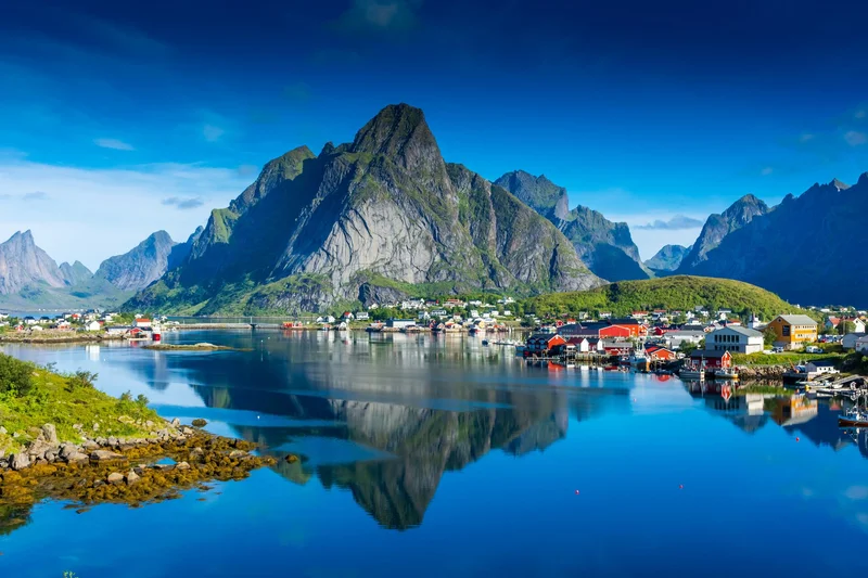 Лофотенские острова, расположенные за Полярным кругом в Норвегии, известны своими живописными пейзажами: крутые горы, глубокие фьорды и песчаные пляжи. Это место привлекает как любителей природы, так и художников со всего мира.