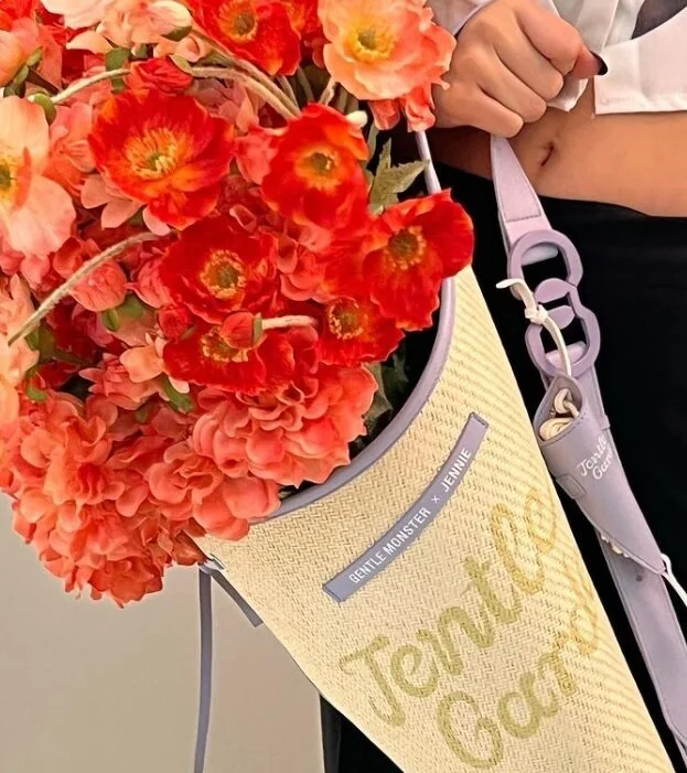 «Придёт в 2022-м», - написала певица в комментарии под одним из своих последних постов. На размещённых в нём фотографиях она позирует в солнцезащитных очках в белой оправе и букетом цветом в кофре. На нём красуется надпись «Gentle Monster x Jennie», а на свисающем футляре для наушников - «Jentle Garden».