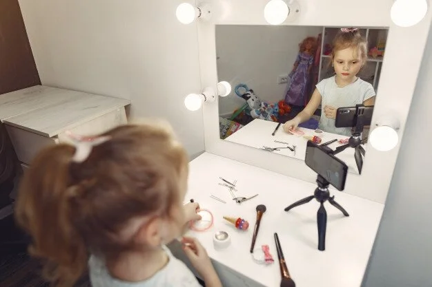Маленькая девочка возле столика с косметикой Источник фото: @prostooleh
