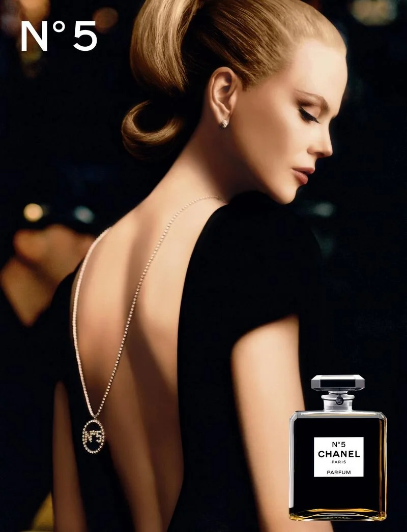 Николь Кидман "украсила" Chanel No. 5 как раз своей элегантностью и статусом первоклассной актрисы. Рекламную кампанию снял режиссёр фильма "Мулен Руж" (2001) Баз Лурманн, превратив её в настоящее пиршество для глаз. Она приравняла французский парфюм к красоте, романтике и звёздной силе. "Если вы хотите стать кумиром, вы должны пользоваться Chanel No. 5", - гласит слоган этой рекламы.