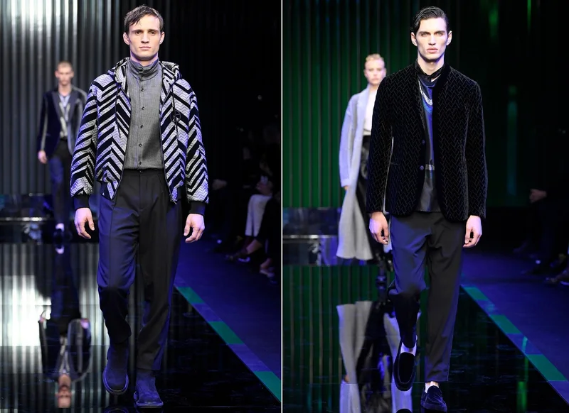 В отличие от большинства модных домов, показавших на Неделе моды в Милане изобилие дорогих нарядов, коллекцию Armani можно назвать скромной. В следующем прохладном сезоне бренд предлагает мужчинам облачиться в уютные и короткие пиджаки, наподобие кардиганов, или во флисовые рубашки-куртки с функциональными карманами. А широкие, укороченные брюки сочетать с массивной обувью на платформе или тракторной подошве.