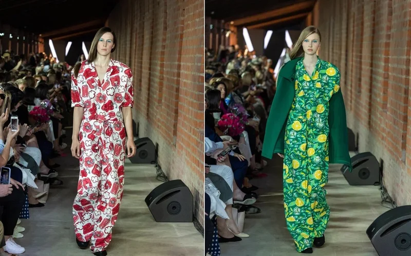 Выбранные принты отличала традиционная для русских народных промыслов задорность, какую придаёт обычно мелкий цветочный рисунок. Были среди них и хиты последних лет – крупные изображения животных и фруктов: лимонов, вишни, перцев в др.
