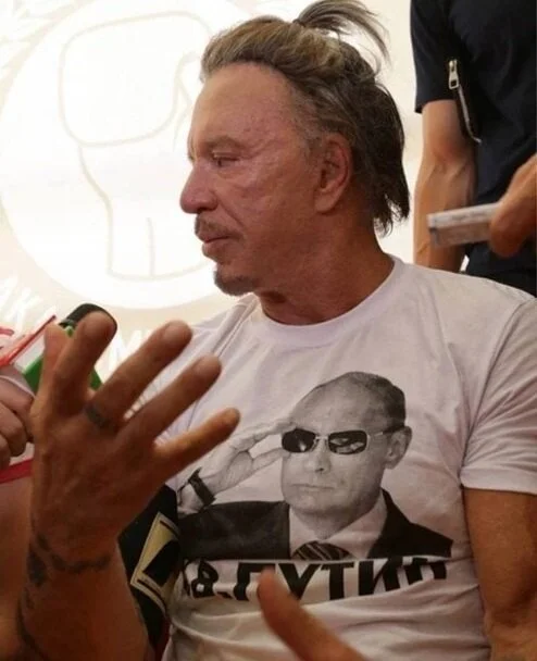 Это уже не первый раз, когда актёра замечают поддерживающим Россию. Журналистам он рассказал, что несколько раз даже встречался с Путиным. При этом, футболки с изображением главы России, Микки просит не воспринимать как политические заявления, отмечая, что слабо разбирается в политике.