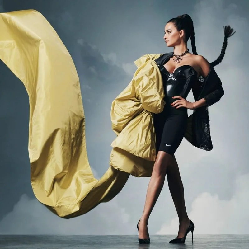 Пенелопа Крус стала последней знаменитостью, присоединившейся к модному тренду в наряде от Atsuko Kudo для фотосессии журнала Vogue España. Эффектное боди из чёрного латекса актриса и продюсер дополнила клетчатым жакетом из шерсти от Chanel и причёской в виде высокого конского хвоста, напомнившего о Ким Кардашьян. Американская теледива часто делала такой некоторое время назад, когда ещё не перекрасилась в блондинку, чтобы быть похожей на Мэрилин Монро и надеть её платье на Met Gala 2022.