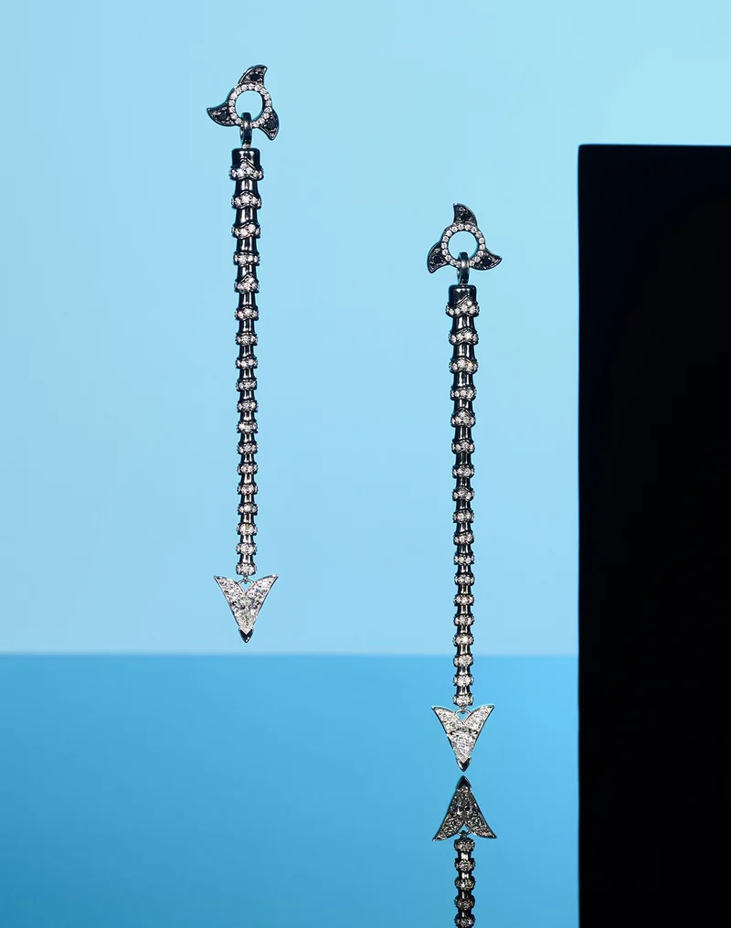 Дебютные украшения, показанные в частном порядке в Дубае, называются «Дракон» и представляют собой пять дизайнов, каждый из которых произведён в количестве десяти копий. Основные цвета – чёрный и красный, принадлежащие вымышленному дому Таргариенов и его представительнице Дейнерис Таргариен, находящейся в центре повествования сериала. «На создание коллекции нас вдохновили сила и уязвимость Дейнерис, а также её отношениями с драконами. Мы постарались выразить историю этой непростой женщины и путь от сиротского приюта до монарха и попыток овладеть Железным Троном», - пояснила Клэптон. В частности, коллекция включает трансформируемый кулон в виде яйца, сделанный из белого золота и чёрного родия, на цепочке алмазной огранки, а также вдохновлённые драконами серьги-каффы с рубинами, розовыми сапфирами и бриллиантами.