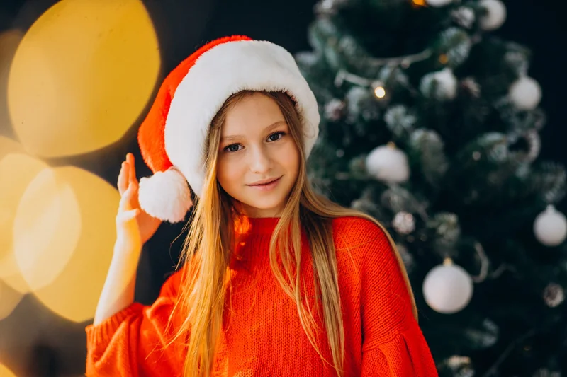Девочка в колпаке Санты Источник фото: @senivpetro/freepik.com