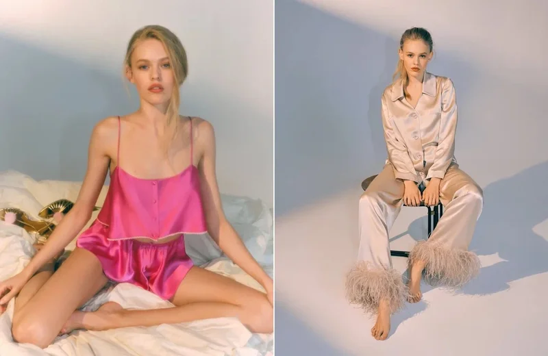 Про сильную половину пока умолчим, а вот фантазии представительниц прекрасного пола есть где разгуляться. В коллекции FR они найдут для себя игривое нижнее бельё, богемный халат, пижаму с отделкой из перьев, нежный комплект с шортами и элегантный костюм. Оттенки деликатные и насыщенные: нежный сливочный, загадочный дымчатый, сочная фуксия, глубокий чёрный и мягкий хаки. Швы виртуозно отделаны кружевом, а тактильно вещи настолько приятны, что не хочется их снимать. Они просто созданы для одновременно расслабленного и стильного досуга.