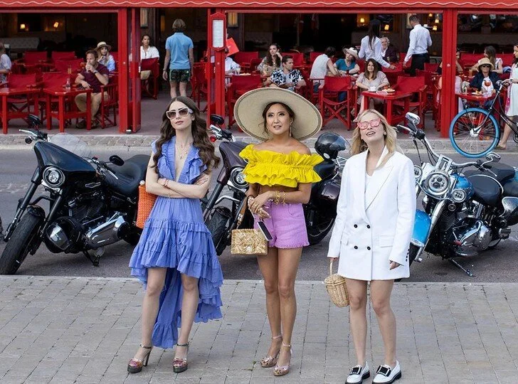 Лили Коллинз, Эшли Парк и Камилль Раза в сериале "Эмили в Париже" (с 2020). Источник фото: Netflix.