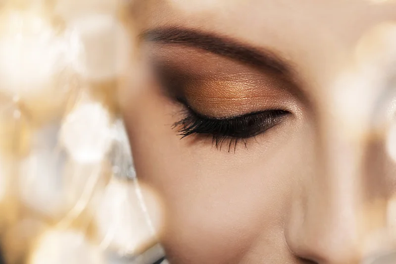 Обязательно добавляем тушь и темные тени для век, чтобы придать глазам дымчатый вид.
