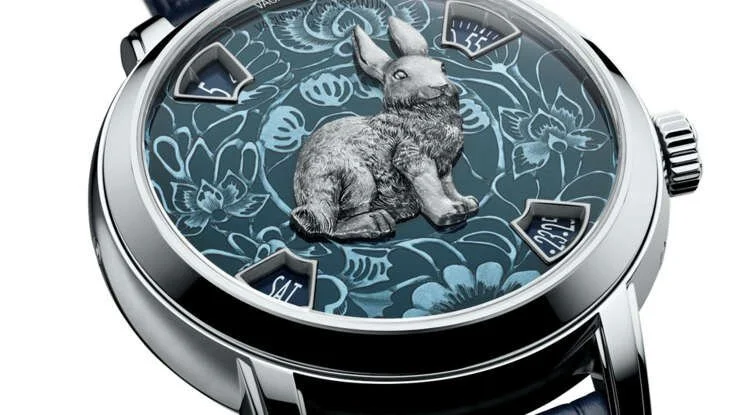 Тем временем, Vacheron Constantin и Dior выбрали в качестве основного принципа оформления «кроличьих» моделей ручную гравировку. Например, часы Grand Suar украшает золотой кролик, прыгающий через авантюрин к дереву из перламутра. Швейцарский бренд Métiers d’Art Legend также представил часы с гравированной фигурой кролика на фоне зелени, вдохновлёнными бумажной аппликацией. А чтобы клиент не забыл, какой сейчас год, на окантовке циферблата размещена надпись: «2023 – год кролика».