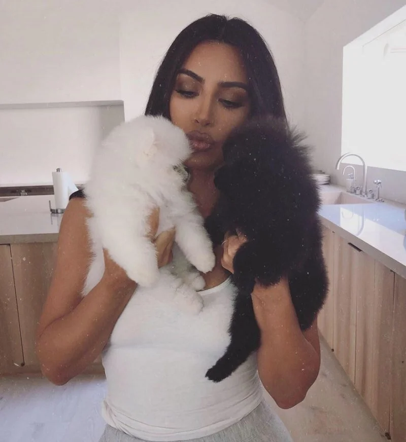 В сентябре 2019-го бизнесвумен и звезда реалити-шоу спросила у поклонников о том, как назвать двух мохнатых друзей: «Познакомьтесь с нашими новыми малышами! Нам только осталось подобрать имена! Норт предложила те, что сочетаются с именем другого нашего померанца – Суши. Она хочет назвать белую девочку Саке, а чёрного мальчика Соба или Соевый соус. Пожалуйста, ниже накидайте свои идеи!!!».