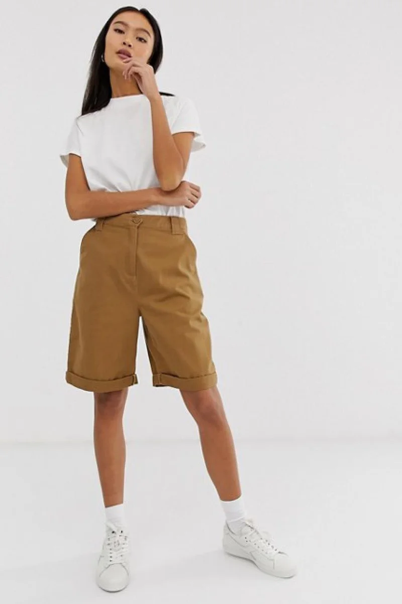 Какие шорты в моде этим летом? Это сшитые на заказ шорты, льняные, шелковые, джинсовые, мини-шорты, шорты с высокой талией, джинсовые шорты с заниженной талией, шорты с завязками на талии и спортивные шорты . Бермуды тоже в моде.
