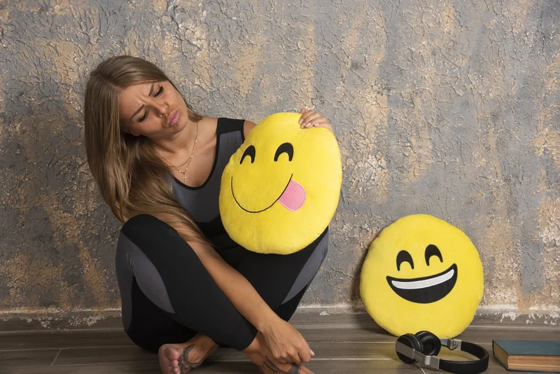 Девушка с подушками-смайлами Источник фото: @azerbaijan-stockers/freepik.com