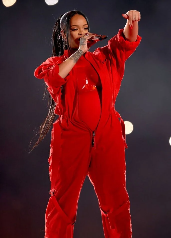 Рианна готовится стать матерью во второй раз. Накануне во время выступления на сцене в рамках Суперкубка по американскому футболу 34-летняя певица предстала в ярко-красном костюме с округлившимся животом. И стала первой женщиной, выступившей во время беременности на престижном спортивном соревновании.