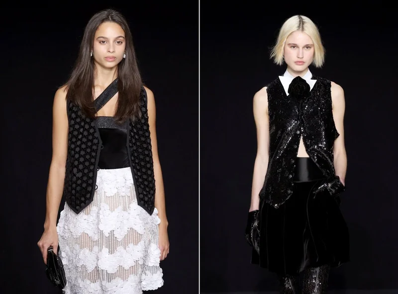 Несмотря на то, что Армани, может, и опоздал на спортивную вечеринку, его фасоны станут находкой для клиентов с красных ковровых дорожек, которые могут есть и пить, сколько душе угодно, не слишком беспокоясь о талии. Другие обрадуются, когда увидят его сияющие вечерние платья с туфлями на плоской подошве, напоминающими лоферы, – радикальное сочетание для любого дизайнера, работающего для красных ковровых дорожек.