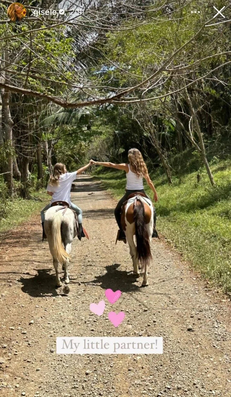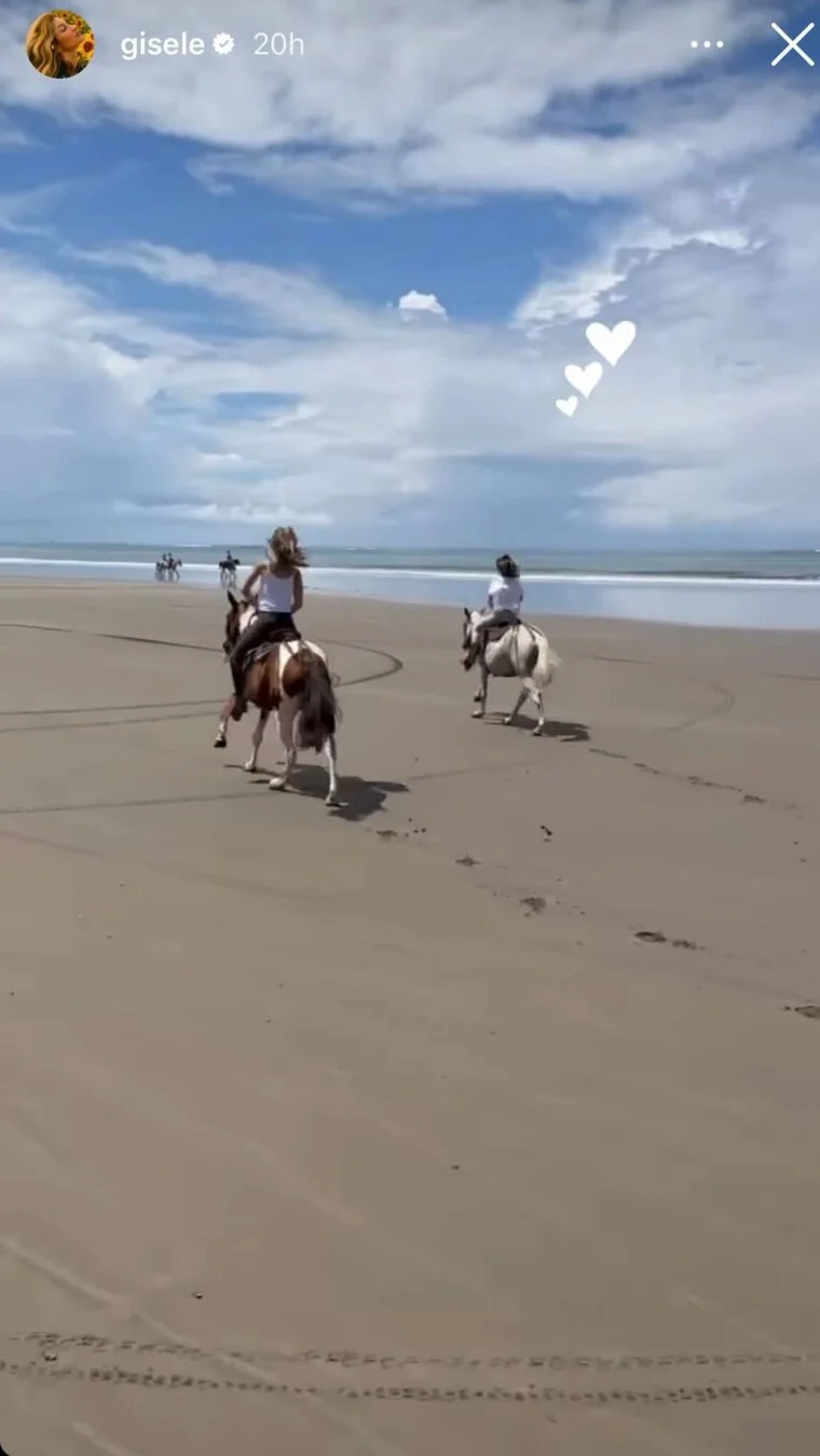 Жизель Бундхен наслаждается временем, которое проводит на каникулах вместе с дочерью. В соцсетях модель поделилась фотографиями, как они с 10-летней Вивиан скачут на лошадях по пляжу.