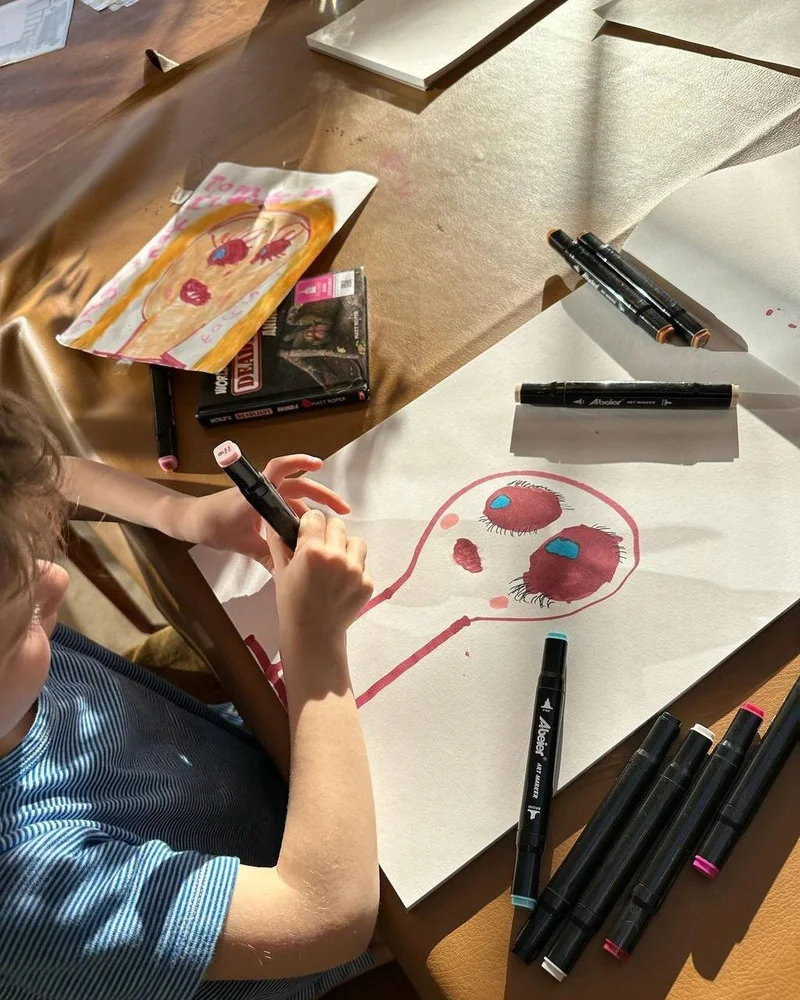 Джек рисует портрет мамы Роузи Хантингтон-Уайтли. Март 2023. Источник фото: соцсети.