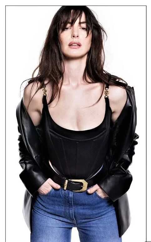 Помимо чёрно-белых изображений Энн в женственных платьях, в рамках рекламной кампании бренда можно увидеть и цветной кадр с более неформальным образом. На фото Хэтэуэй позирует в чёрном корсете, кожаной куртке и голубых джинсах с высокой талией. «Сейчас я собираюсь наслаждаться жизнью в этих сексуальных джинсах», - отметила она.