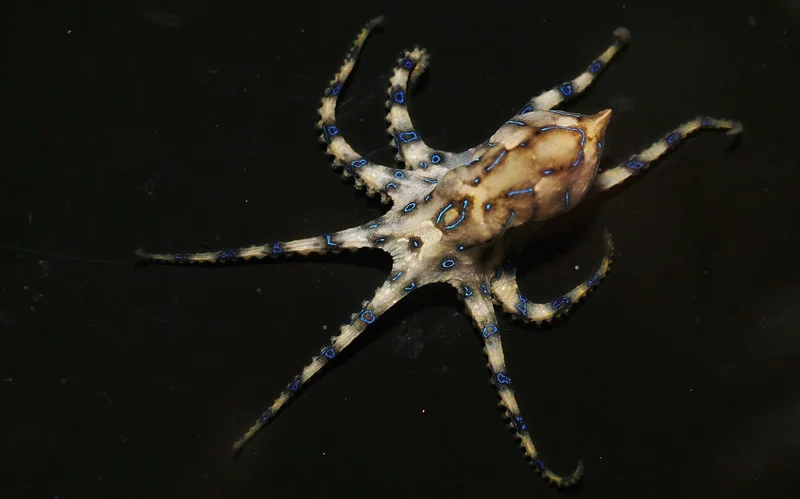 У осьминогов много врагов (рыбы, морские птицы, китообразные, а иногда и другие осьминоги), поэтому маскировки и мимики не всегда достаточно. Вот почему некоторые виды могут похвастаться ядом. Хорошим примером этой смертоносной особенности является осьминог с синими кольцами (hapalochlaena lunulata) - крошечное и внешне безобидное существо. Его можно встретить в водах Юго-Восточной Азии. Этот осьминог обладает одним из самых сильнодействующих из существующих ядов - тетродотоксином.