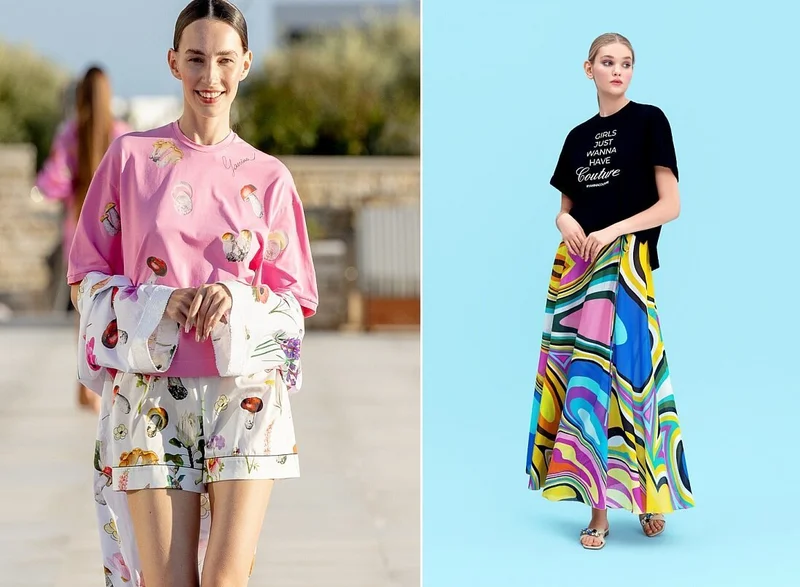 Лето 2023 модельер предлагает провести легко, беззаботно, расслабленно в платьях, кафтанах, блузах, футболках, шортах и костюмах пижамного типа из струящихся тканей. Конечно, в предметах одежды царит фирменный принт бренда – разноцветные капли. Но не только он. Есть модели, в которых Юлия «поиграла» с логотипом, а также те, в которых визуально напоминается о таких традиционных признаках лета, как цветы, грибы, туфельки и морские звёзды.