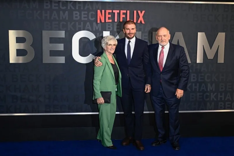 Дэвид Бекхэм с родителями на премьере сериала. Октябрь 2023 Источник фото: Gareth Cattermole/Getty Images