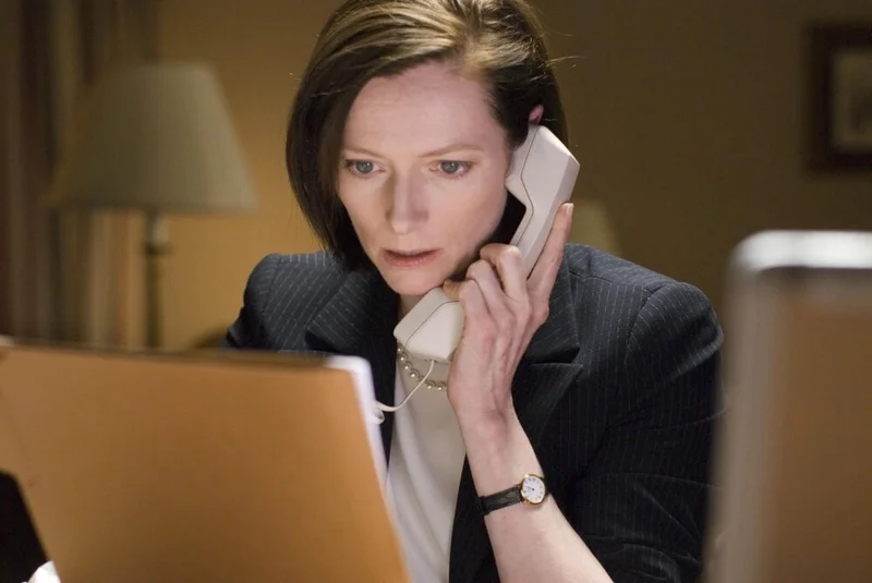 Суинтон унесла с собой «Оскар» в номинации «Лучшая исполнительница роли второго плана» за работу над этой криминальной драмой. Сюжет строится вокруг специалиста по защите интересов в сфере бизнеса (Джордж Клуни), которого призывает на помощь юридическая фирма после нервного срыва, случившегося у одного из её руководителей (Том Уилкинсон). Выяснилось, что причиной стали вскрывшиеся махинации в представляемой им крупной химической компании. Однако её генеральный директор (Суинтон) готова сделать всё, чтобы выиграть дело.