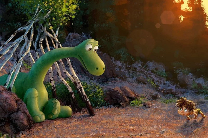 Меленький динозавр Арло боится всего на свете. В результате трагического происшествия его отец погибает. Арло пытается отомстить человеку, убившему папу, начинает гнаться за ним по реке. Внезапно он ударяется головой и теряет сознание. Очнувшись динозавр понимает, что унесен течением далеко от дома. Ему предстоит найти дорогу домой, побеждая свой страх. Он знакомится с пещерным мальчиком Пятнышком.