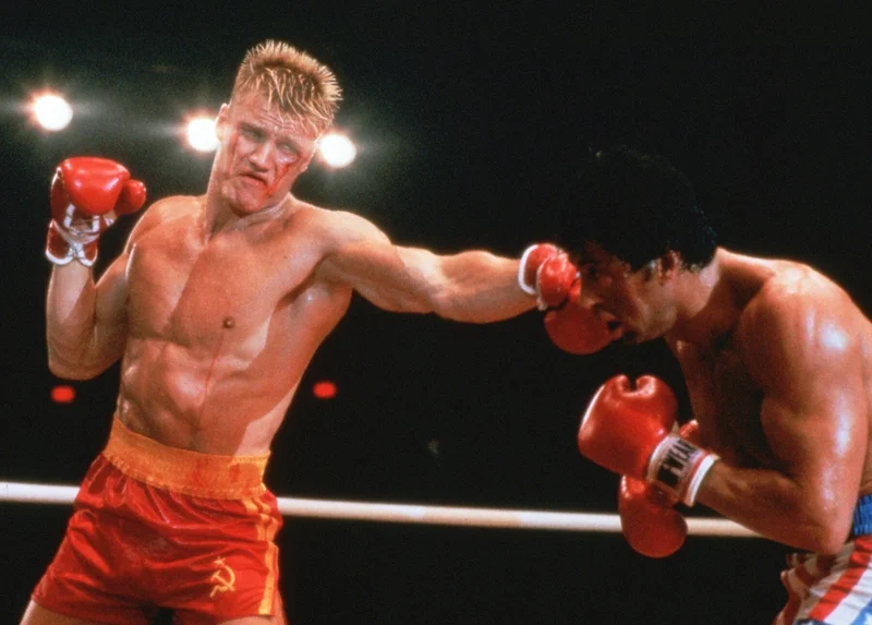 Дольф Лундгрен и Сильвестр Сталлоне в к/ф "Рокки 4" (1985). Источник фото: United Artists.