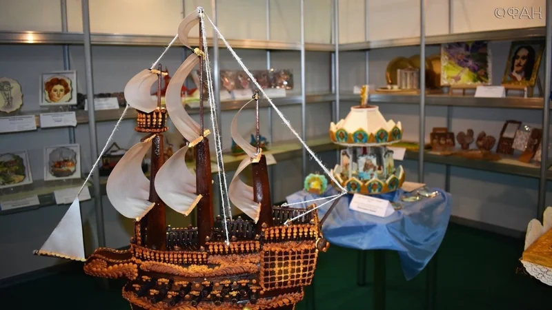 Среди представленных на фестивале работ — сладкая 3D-копия храма Христа Спасителя в Москве, глазированный медведь с бочонком меда, озаглавленный как «Весеннее пробуждение», парусник и пряничные карусели.