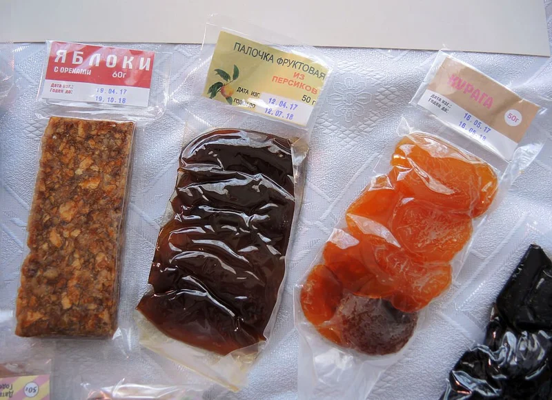 Сегодня рацион космонавтов состоит из каш, различных супов, из вторых блюд на орбите есть свинина, говядина, птица и рыба. Обязательно на МКС доставляют различные фрукты и овощи: лимоны, яблоки, грейпфруты, помидоры и чеснок. Из сладкого - шоколад, конфеты, фруктовые палочки и творог с ягодами или орешками. С завидной периодичности российские мужские экипажи просят доставить на станцию такие острые закуски и соусы, как аджика, горчица и хрен. Также в рацион россиян включена черная икра.