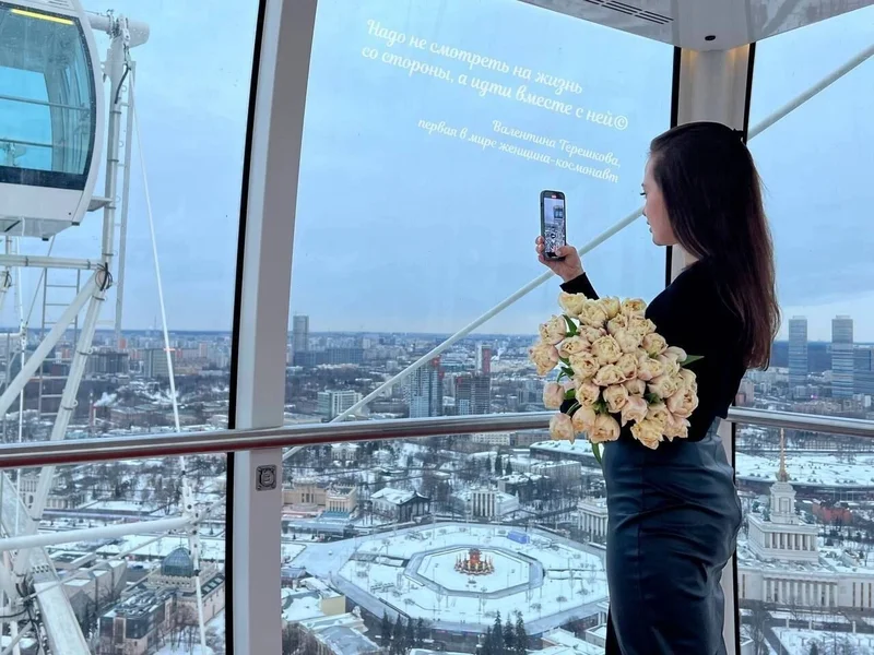 8 марта в кабинах можно будет прочитать цитаты из Валентины Терешковой, Майи Плисецкой, Марины Цветаевой и Алисы Фрейндлих. Также в международный женский день всем представительницам прекрасного пола, посетившим колесо обозрения, будут подарены цветы.
