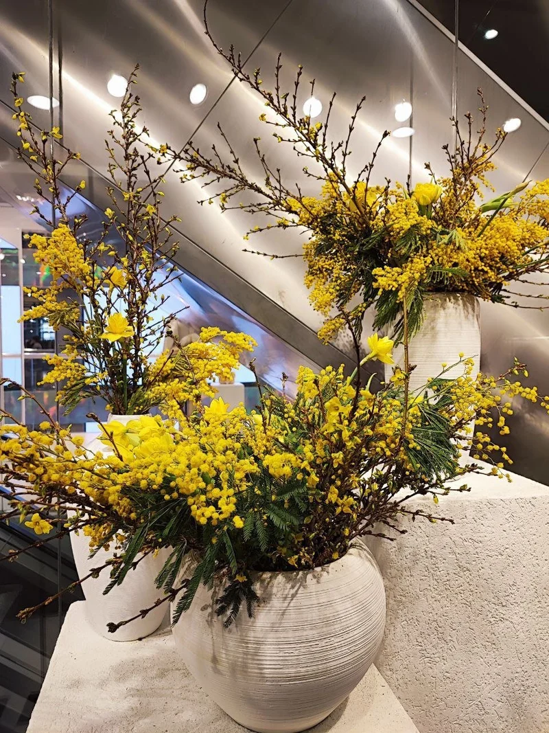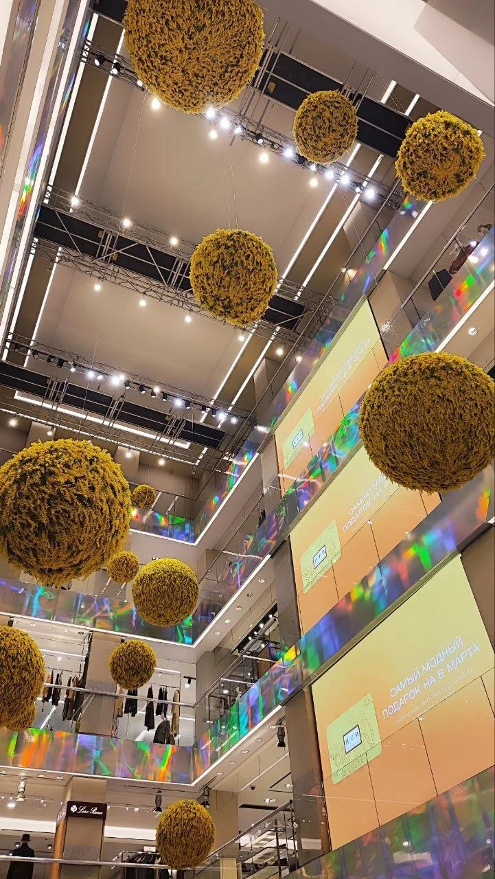 Московский ЦУМ по традиции в преддверии Международного женского дня украсили с помощью шаров из мимозы.