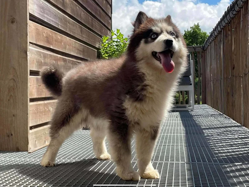 Эта смесь сибирского хаски и померанского шпица очень привлекательна, но не лишена этических соображений. Из-за большой разницы в размерах обеих родительских собак для получения помета щенков обычно необходимо искусственное оплодотворение. И само собой разумеется, что матерью должна быть хаски, поскольку помет аномально крупных щенков может иметь разрушительные последствия для здоровья. Часто необходимо прибегать к кесареву сечению. Также здесь будет сложно предсказать характер и внешность щенков. Обычно это преданные собаки, более ласковые и менее требовательные, чем хаски.