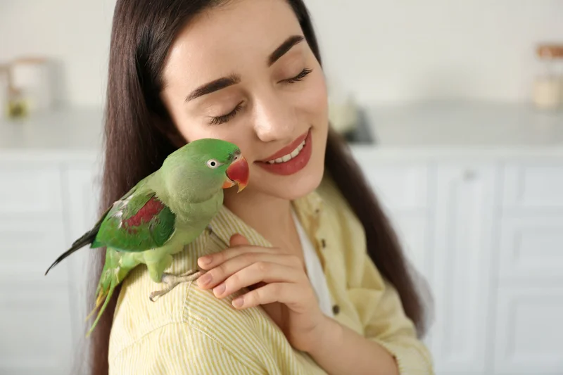 Попугай на плече хозяйки. Источник фото: 123rf.com