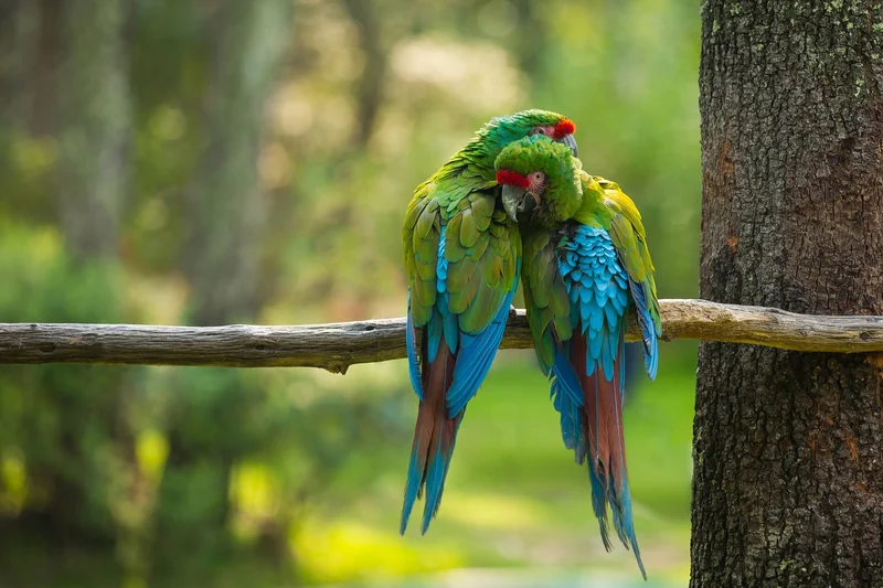 Попугаи славятся своими яркими и разнообразными окрасками. Их оперение может включать все цвета радуги, что делает их одними из самых красивых птиц в мире. Эти яркие цвета часто играют важную роль в социальном поведении и брачных ритуалах попугаев.
