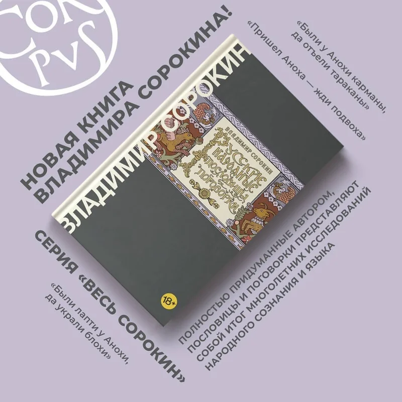 Владимир Сорокин представит книгу «Русские народные пословицы и поговорки» Издательство Corpus выпустит новую книгу Владимира Сорокина «Русские народные пословицы и поговорки». , Общество